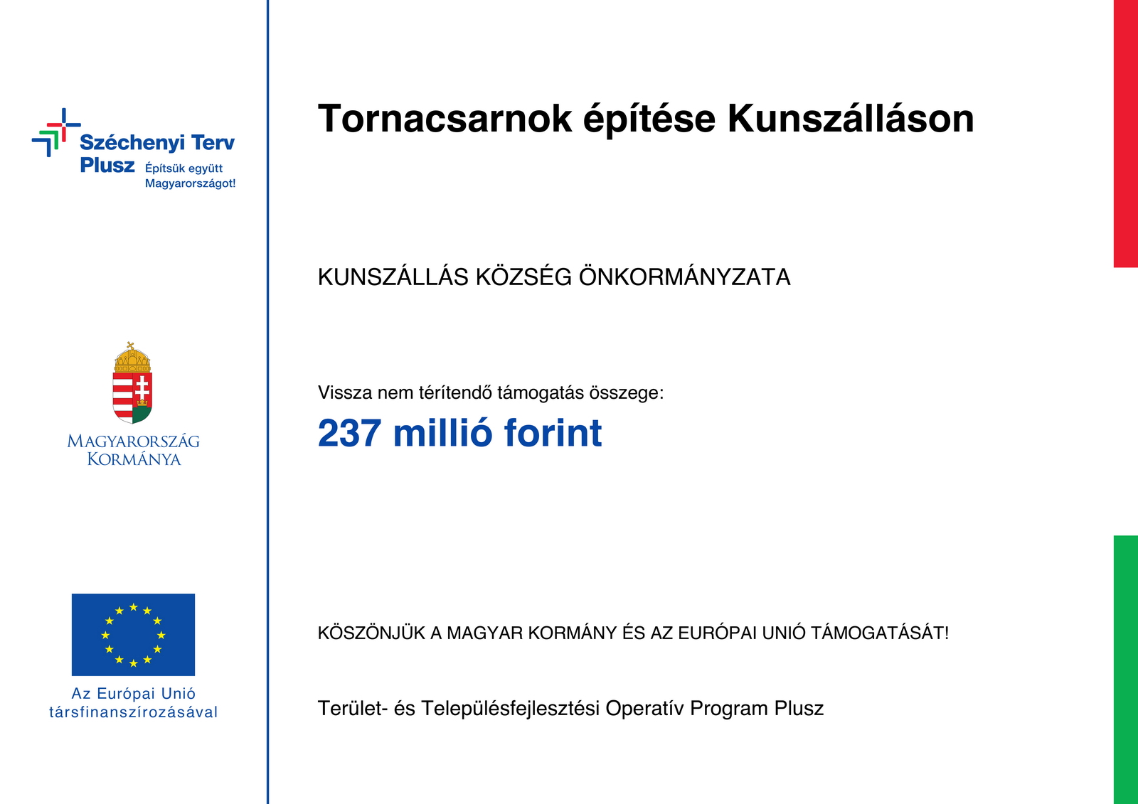 - a fejlesztés tárgya: Tornacsarnok építése Kunszálláson